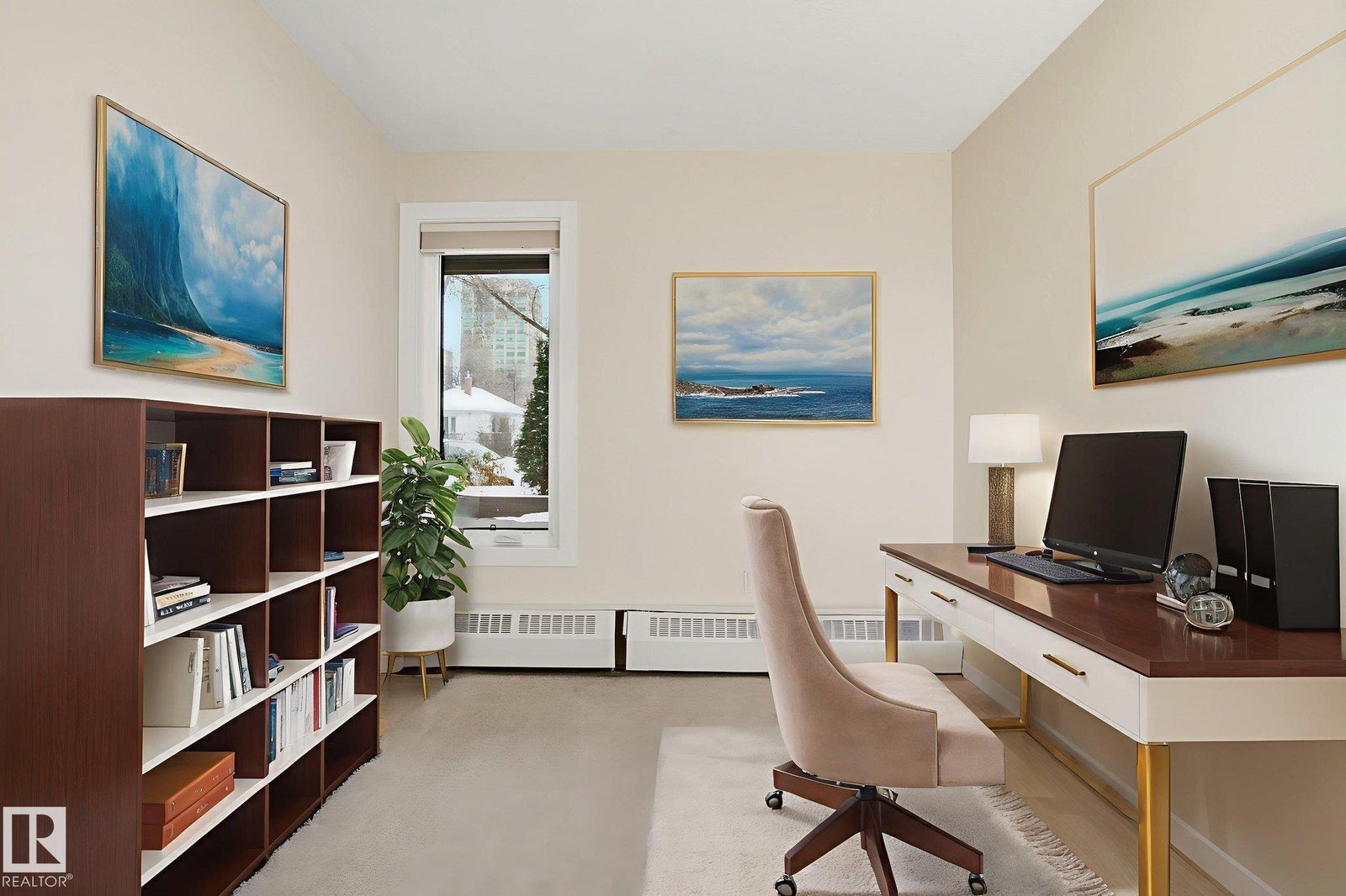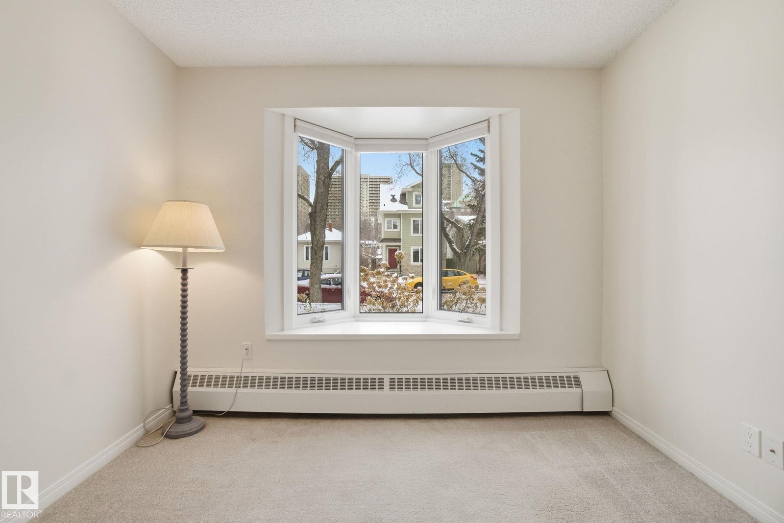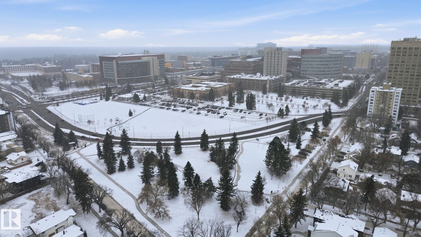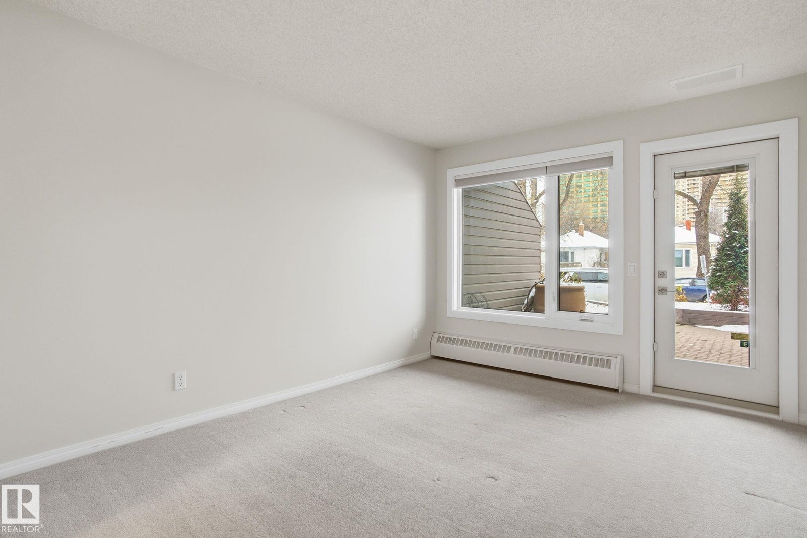 Welcome home to Hampton Village in this expansive 2 bedroom PLUS DEN & 1 bath condo WALKING DISTANCE to University of Alberta Campus. You will love the bright/open (freshly painted fall 2025) floor plan featuring a bright white kitchen with newer dishwasher & stove (last 5 years)! Generously sized primary suite with large walk-through closet & a 4 piece bathroom is a nice oasis after a busy day. A second bedroom is perfect for a roommate or guests! An additional full den overlooking the quaint front patio & tree lined street. IN-SUITE LAUNDRY - a rare find! SPRAWLING brick patio facing mature trees! Easy access to TWO underground heated parking stalls & assigned storage! Prime location within walking distance to University of Alberta Hospital & Campus, HMART & Safeway, Starbucks, Tim Hortons & all the shopping that Whyte Ave has to offer. Convenience at its finest- Only a 10 MINUTE WALK to TWO LRT stations - beat downtown vehicle traffic! **CONDO FEES OF $803.48 INCLUDE heat & water** Welcome home!
